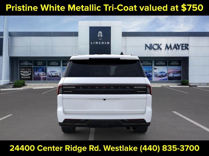 Nick Mayer Lincoln Westlake is proud to offer this fantastic 2025 Lincoln Navigator L in White Metallic This vehicle has been thoroughly inspected, ready to take home, and comes with the following features; Equipment Group 202A Reserve II, Heavy-Duty Trailer Tow Package (26mm Engine Radiator and Trailer Brake Controller), Jet Appearance Package (Black Accent Badge, Black Accent Interior Pack, Black Beltline Molding, Black Painted Roof Rails, Front Bumper Fascia, Lincoln Lit Star, Unique Lincoln Grille Pillar Black Surround, and Wheels: 22 High-Gloss Ebony Aluminum), 28 Speakers, 2nd Row Heated & Ventilated Dual Captain's Chair, 3rd Row All-Weather Floor Liners, 3rd row seats: split-bench, 4-Wheel Disc Brakes, ABS brakes, Adaptive suspension, Adjustable pedals, Air Conditioning, All-Weather Flr Liners w/Fr & Rr Carpet Floor Mats, Alloy wheels, AM/FM radio: SiriusXM with 360L, Apple CarPlay/Android Auto, Audio memory, Auto High-beam Headlights, Auto Htd & Ventilated Premium Lthr Captain's Chair, Auto Start-Stop Technology, Auto tilt-away steering wheel, Auto-dimming door mirrors, Auto-dimming Rear-View mirror, Auto-leveling suspension, Automatic temperature control, Brake assist, Bumpers: body-color, Compass, Delay-off headlights, Driver door bin, Driver vanity mirror, Driver's Seat Mounted Armrest, Dual front impact airbags, Dual front side impact airbags, Electronic Stability Control, Emergency communication system: 911 Assist, Exterior Parking Camera Rear, Four wheel independent suspension, Front anti-roll bar, Front Bucket Seats, Front dual zone A/C, Front reading lights, Fully automatic headlights, Garage door transmitter, Heated door mirrors, Heated front seats, Heated rear seats, Heated steering wheel, HVAC memory, Illuminated entry, Leather steering wheel, Lincoln Connect, Lincoln Premium Connectivity, Low tire pressure warning, Memory seat, Navigation system: Connected Navigation (1-year trial), Occupant sensing airbag, Outside temperature display, Overhead airbag, Overhead console, Panic alarm, Passenger door bin, Passenger seat mounted armrest, Passenger vanity mirror, Pedal memory, Power adjustable front head restraints, Power adjustable rear head restraints, Power door mirrors, Power driver seat, Power moonroof, Power passenger seat, Power steering, Power windows, Radio data system, Radio: Revel Ultima 3D AM/FM/HD Audio System, Rain sensing wipers, Rear air conditioning, Rear anti-roll bar, Rear audio controls, Rear reading lights, Rear window defroster, Rear window wiper, Reclining 3rd row seat, Remote keyless entry, Security system, SiriusXM w/360L, Speed control, Speed-sensing steering, Speed-Sensitive Wipers, Split folding rear seat, Spoiler, Steering wheel memory, Steering wheel mounted audio controls, Tachometer, Telescoping steering wheel, Tilt steering wheel, Traction control, Trip computer, Turn signal indicator mirrors, Variably intermittent wipers, Ventilated front seats, and Wheels: 22 Dark Tarnished Aluminum. Price includes: $3000 - Retail Customer Cash. Exp. 03/31/2026 $500 - Spring Sales Event Open Bonus Cash. Exp. 03/31/2026