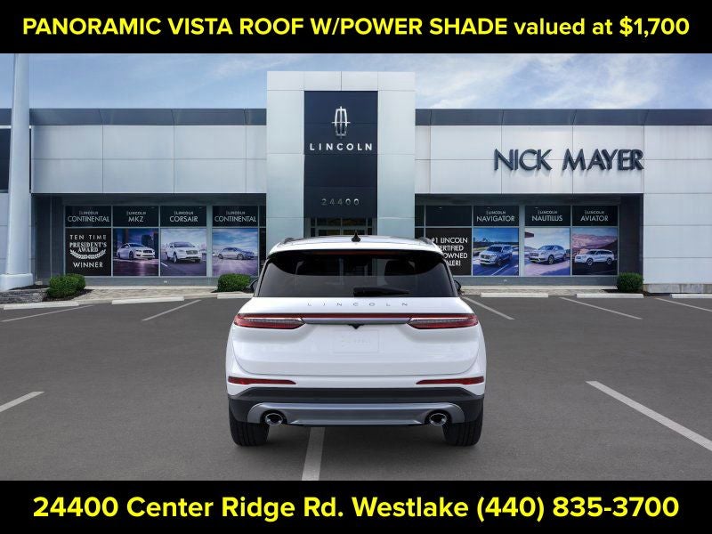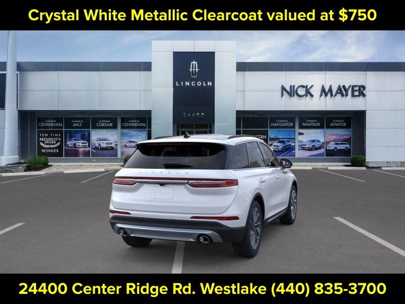 Nick Mayer Lincoln Westlake is proud to offer this attractive 2026 Lincoln Corsair in Crystal White This vehicle has been thoroughly inspected, ready to take home, and comes with the following features; Equipment Group 101A Premiere II (2 Additional USB Ports (illuminated Types C and C) - Rear of Center Console, 60/40 EasyFold Rear Seat with Power Seatback Release, Alexa Built-In, Frameless Auto Dimming Rearview Mirror, Hands-Free Liftgate, Heated Steering Wheel, Heated/Ventilated Front Seats, Micro-Perforated Lincoln Soft Touch Front Captain's Chairs, Phone As A Key (PAAK), Power Tilt/Telescoping Steering Column with Memory, Radio: Lincoln Premium Audio System, Rain Sensing Wipers, Sideview Mirrors, SiriusXM with 360L, SYNC 4, Universal Garage Door Opener, Voice-Activated Connected Navigation - 4 Year Included Duration, Wheels: 18 Bright Machined Aluminum with Dark Tarnish Finish, Windshield Wiper De-Icer, and Wireless Charging Pad), 360-Degree Camera, 4-Wheel Disc Brakes, 9 Speakers, ABS brakes, Air Conditioning, All-Weather Floor Liners with Front and Rear Carpet Floor Mats, Alloy wheels, AM/FM radio: SiriusXM with 360L, Apple CarPlay/Android Auto, Auto High-beam Headlights, Auto-dimming Rear-View mirror, Automatic temperature control, Brake assist, Bumpers: body-color, Cargo Area Protector, Compass, Delay-off headlights, Driver door bin, Driver vanity mirror, Dual front impact airbags, Dual front side impact airbags, Electronic Stability Control, Emergency communication system: 911 Assist, Four wheel independent suspension, Front anti-roll bar, Front Bucket Seats, Front Center Armrest, Front dual zone A/C, Front Parking Sensors, Front reading lights, Fully automatic headlights, Heated door mirrors, Heated front seats, Illuminated entry, Knee airbag, Leather steering wheel, Lincoln Soft Touch Front Captain's Chairs, Low tire pressure warning, Memory seat, Navigation system: Connected Navigation (4-year trial), Occupant sensing airbag, Outside temperature display, Overhead airbag, Overhead console, Panic alarm, Panoramic Vista Roof with Power Shade, Passenger door bin, Passenger vanity mirror, Post-Collision Braking, Power door mirrors, Power driver seat, Power Liftgate, Power passenger seat, Power steering, Power windows, Radio data system, Rear anti-roll bar, Rear Parking Sensors, Rear reading lights, Rear seat center armrest, Rear window defroster, Rear window wiper, Remote keyless entry, Reverse Brake Assist, Security system, Speed control, Speed-sensing steering, Speed-Sensitive Wipers, Split folding rear seat, Spoiler, Steering wheel mounted A/C controls, Steering wheel mounted audio controls, Tachometer, Telescoping steering wheel, Tilt steering wheel, Traction control, Trip computer, Variably intermittent wipers, Wheels: 18 Warm Alloy-Painted, and Wheels: 19 Bright Machined Aluminum with Dark Tarnish Premium Paint.