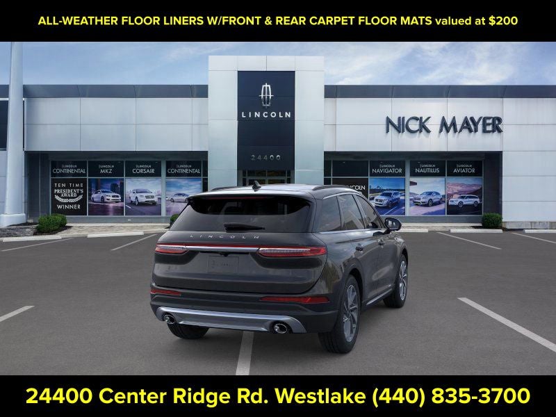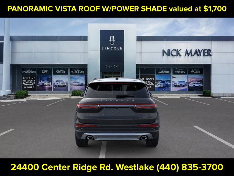 Nick Mayer Lincoln Westlake is proud to offer this great 2026 Lincoln Corsair in Black Metallic This vehicle has been thoroughly inspected, ready to take home, and comes with the following features; Equipment Group 101A Premiere II (2 Additional USB Ports (illuminated Types C and C) - Rear of Center Console, 60/40 EasyFold Rear Seat with Power Seatback Release, Alexa Built-In, Frameless Auto Dimming Rearview Mirror, Hands-Free Liftgate, Heated Steering Wheel, Heated/Ventilated Front Seats, Micro-Perforated Lincoln Soft Touch Front Captain's Chairs, Phone As A Key (PAAK), Power Tilt/Telescoping Steering Column with Memory, Radio: Lincoln Premium Audio System, Rain Sensing Wipers, Sideview Mirrors, SiriusXM with 360L, SYNC 4, Universal Garage Door Opener, Voice-Activated Connected Navigation - 4 Year Included Duration, Wheels: 18 Bright Machined Aluminum with Dark Tarnish Finish, Windshield Wiper De-Icer, and Wireless Charging Pad), 360-Degree Camera, 4-Wheel Disc Brakes, 9 Speakers, ABS brakes, Air Conditioning, All-Weather Floor Liners with Front and Rear Carpet Floor Mats, Alloy wheels, AM/FM radio: SiriusXM with 360L, Apple CarPlay/Android Auto, Auto High-beam Headlights, Auto-dimming Rear-View mirror, Automatic temperature control, Brake assist, Bumpers: body-color, Compass, Delay-off headlights, Driver door bin, Driver vanity mirror, Dual front impact airbags, Dual front side impact airbags, Electronic Stability Control, Emergency communication system: 911 Assist, Four wheel independent suspension, Front anti-roll bar, Front Bucket Seats, Front Center Armrest, Front dual zone A/C, Front Parking Sensors, Front reading lights, Fully automatic headlights, Heated door mirrors, Heated front seats, Illuminated entry, Knee airbag, Leather steering wheel, Lincoln Soft Touch Front Captain's Chairs, Low tire pressure warning, Memory seat, Navigation system: Connected Navigation (4-year trial), Occupant sensing airbag, Outside temperature display, Overhead airbag, Overhead console, Panic alarm, Panoramic Vista Roof with Power Shade, Passenger door bin, Passenger vanity mirror, Post-Collision Braking, Power door mirrors, Power driver seat, Power Liftgate, Power passenger seat, Power steering, Power windows, Radio data system, Rear anti-roll bar, Rear Parking Sensors, Rear reading lights, Rear seat center armrest, Rear window defroster, Rear window wiper, Remote keyless entry, Reverse Brake Assist, Security system, Speed control, Speed-sensing steering, Speed-Sensitive Wipers, Split folding rear seat, Spoiler, Steering wheel mounted A/C controls, Steering wheel mounted audio controls, Tachometer, Telescoping steering wheel, Tilt steering wheel, Traction control, Trip computer, Variably intermittent wipers, Wheels: 18 Warm Alloy-Painted, and Wheels: 19 Bright Machined Aluminum with Dark Tarnish Premium Paint.