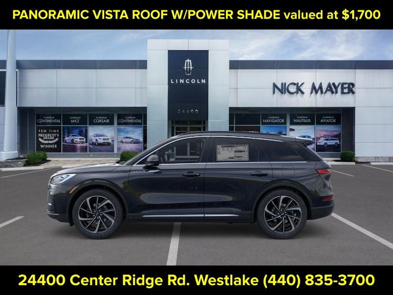 Nick Mayer Lincoln Westlake is proud to offer this fantastic 2026 Lincoln Corsair in Infinite Black Metallic Clearcoat This vehicle has been thoroughly inspected, ready to take home, and comes with the following features; Equipment Group 201A (2 Additional USB Ports in Rear of Center Console, 60/40 EasyFold Rear Seat w/Power Seatback Release, Frameless Auto Dimming Rearview Mirror, Hands-Free Liftgate, Heated Sideview Mirrors, Heated Steering Wheel, Heated/Ventilated Driver & Front Passenger Seats, Phone As A Key (PAAK), Power Tilt/Telescoping Steering Column w/Memory, Rain Sensing Wipers, Universal Garage Door Opener, Windshield Wiper De-Icer, and Wireless Charging Pad), 19 Bright Machined Aluminum Wheels, 360-Degree Camera, 4-Wheel Disc Brakes, 9 Speakers, ABS brakes, Air Conditioning, Alexa Built-In, All-Weather Floor Liners w/Fr&Rr Carpet Floor Mats, Alloy wheels, AM/FM radio: SiriusXM with 360L, Apple CarPlay/Android Auto, Auto High-beam Headlights, Auto-dimming Rear-View mirror, Automatic temperature control, Brake assist, Bumpers: body-color, Compass, Delay-off headlights, Driver door bin, Driver vanity mirror, Dual front impact airbags, Dual front side impact airbags, Electronic Stability Control, Emergency communication system: 911 Assist, Exterior Parking Camera Rear, Four wheel independent suspension, Front anti-roll bar, Front Bucket Seats, Front Center Armrest, Front dual zone A/C, Front Parking Sensors, Front reading lights, Fully automatic headlights, Heated door mirrors, Heated front seats, Illuminated entry, Knee airbag, Leather steering wheel, Low tire pressure warning, Memory seat, Navigation system: Connected Navigation (4-year trial), Occupant sensing airbag, Outside temperature display, Overhead airbag, Overhead console, Panic alarm, Panoramic Vista Roof w/Power Shade, Passenger door bin, Passenger vanity mirror, Post-Collision Braking, Power door mirrors, Power driver seat, Power Liftgate, Power passenger seat, Power steering, Power windows, Premium Leather-Trimmed Heated Captain's Chairs, Radio data system, Radio: Lincoln Premium Audio System w/MP3, Rear anti-roll bar, Rear Parking Sensors, Rear reading lights, Rear seat center armrest, Rear window defroster, Rear window wiper, Remote keyless entry, Reverse Brake Assist, Security system, SiriusXM w/360L Radio, Speed control, Speed-sensing steering, Speed-Sensitive Wipers, Split folding rear seat, Spoiler, Steering wheel mounted A/C controls, Steering wheel mounted audio controls, SYNC 4 Communications & Entertainment System, Tachometer, Telescoping steering wheel, Tilt steering wheel, Traction control, Trip computer, Variably intermittent wipers, and Wheels: 20 Bright Machined Aluminum.