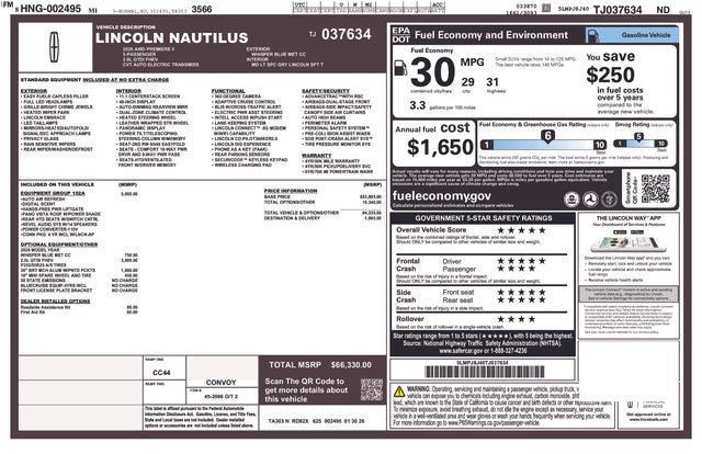 Recent Arrival! Factory MSRP: $66,330 $7,153 off MSRP! 2026 Lincoln Nautilus Premiere AWD CVT 2.0L GTDI FHEV 2.0L GTDI FHEV.