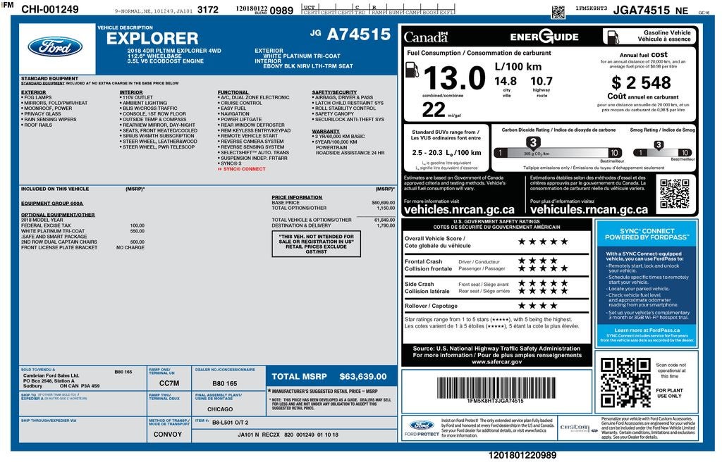 Step inside this Ford Explorer Platinum and be captivated by its stunning white exterior and meticulously crafted interior. The 3.5L V6 engine, paired with a 6-speed automatic transmission and 4WD, delivers an exceptional driving experience, combining power and efficiency with an EPA-estimated 22 MPG on the highway.