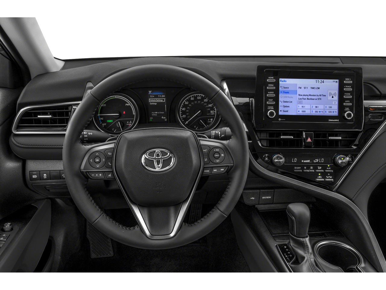 Indulge in the Camry Hybrid's comprehensive suite of advanced features, including the Convenience Package with an auto-dimming rearview mirror and HomeLink universal transceiver, as well as the Audio Upgrade Package featuring a 9-inch touchscreen, wireless smartphone charging, and seamless integration with Android Auto and Apple CarPlay.